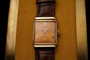 Ref: 1438 Calibre:9-90 Movement:& 手巻き/Hand Wound Case: 18KPG Patek Philippeが1940年代に製造していた、通称”Hooded Lug"。 角形ムーブメントの名機Cal.9-90を搭載。愛称の由来でもある、...