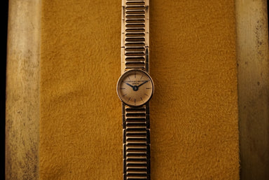 Calibre: 9-90 Movement: 手巻き / Manual Winding Case: 18KYG Strap: SOLAKZADE Original (ソラックザーデオリジナル アリゲーター) 1950年代製のref.1593 "アワーグラス"。なだらかな曲線を描くケースと、そ...